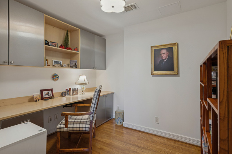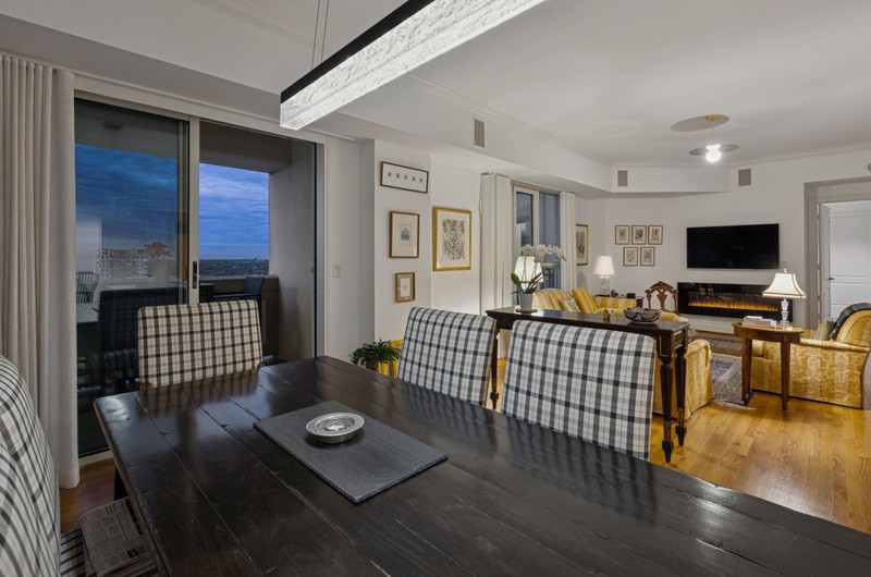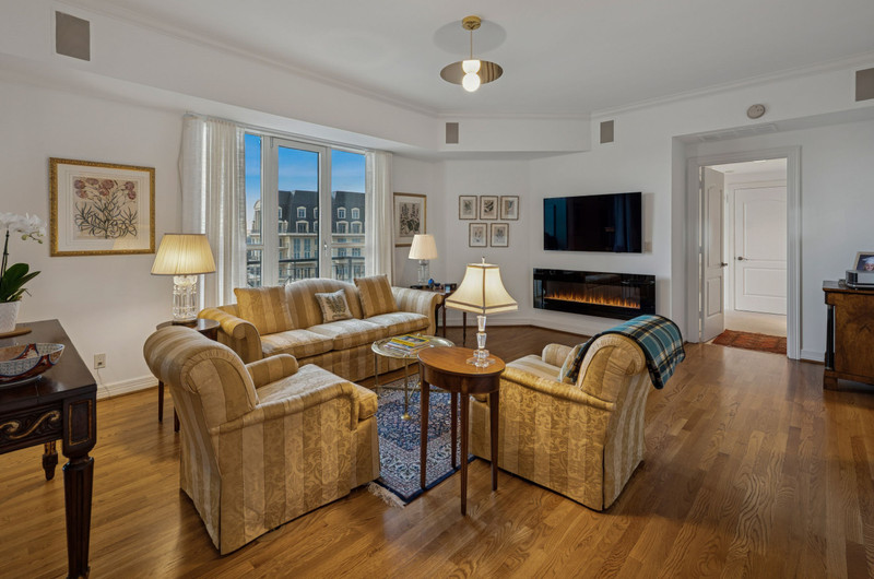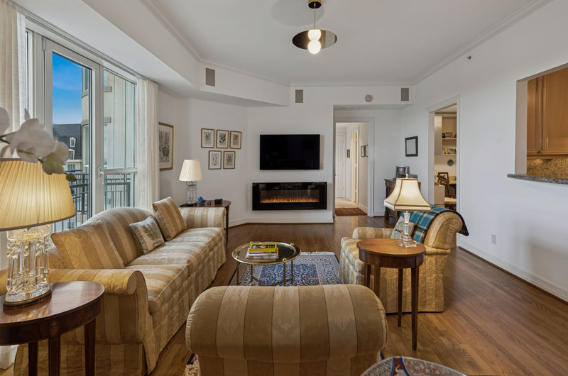 Luxury living at The Mayfair in Turtle Creek. This elegant two-bedroom residence with a study features an open-concept floor plan, decorative fireplace, and north-facing views. The kitchen opens to the living and dining areas and offers a gas cooktop, generous counter space, walk-in pantry, and separate laundry room.