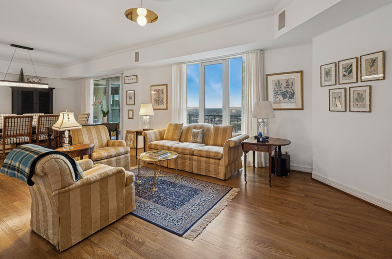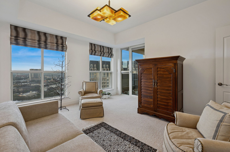Residents enjoy a premier location adjacent to Turtle Creek Park with easy access to the Katy Trail, Uptown, and Downtown Dallas. Amenities include the Sky Club and Mayfair Room with panoramic skyline views, fitness center, coffee bar, and a rooftop terrace with pool and hot tub.